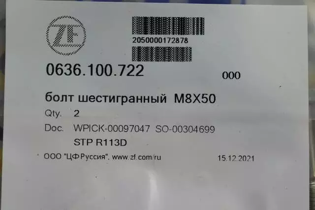 Болт шестигранный ZF 0636.100.722