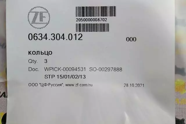 Кольцо уплотнительное ZF 0634.304.012