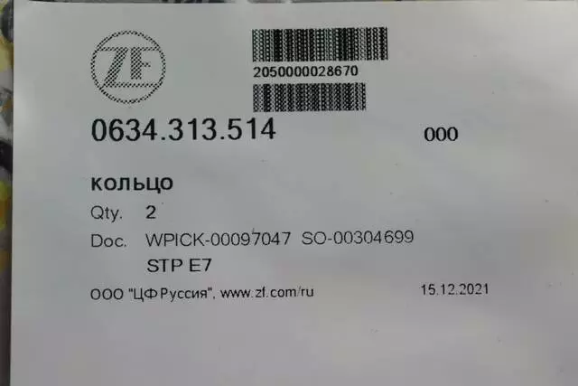 Кольцо уплотнительное ZF 0634.313.514