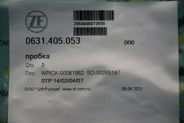 Пробка ZF 0631.405.053